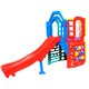 Composto por um módulo com um escorregador grande curvo, escalada curva e um painel interativo de jogo da velha.